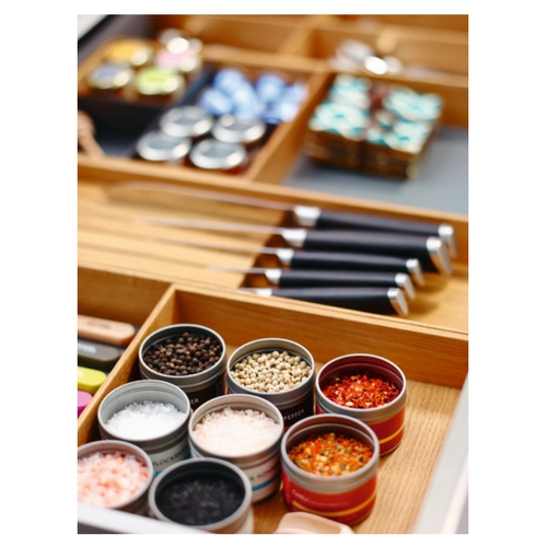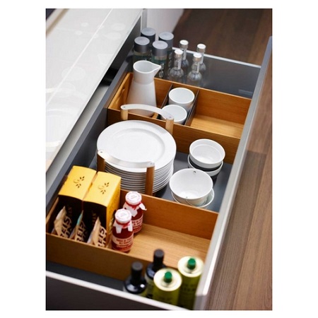 Korkeissa laatikoissa voidaan säilyttää lautasia ja kulhoja. Tähän käy hyvin 60 ja 70 leveät laatikot. Kapeammissa laatikoissa menee tehokkaasti ruokailuvälineet, kauhat ja kapustat. Leveät laatikot ovatkin tehokasta varastointia kuivatarvikkeille, kattiloille, pannuille ja isoille astioille.